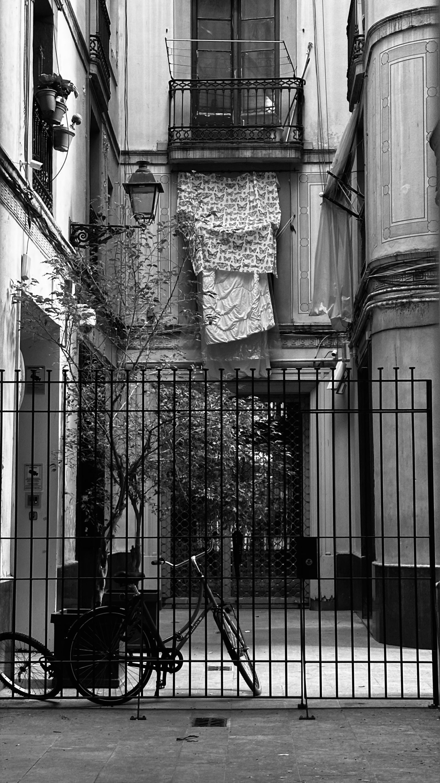 She rests leaning against the fence, 360 degrees of rubber that trampled the skin of the city, running over the cobblestones and opening in two, like Moses, the water that contained the reflection of this, the city of Zafón and María José Ragué, which has been orphaned forever.